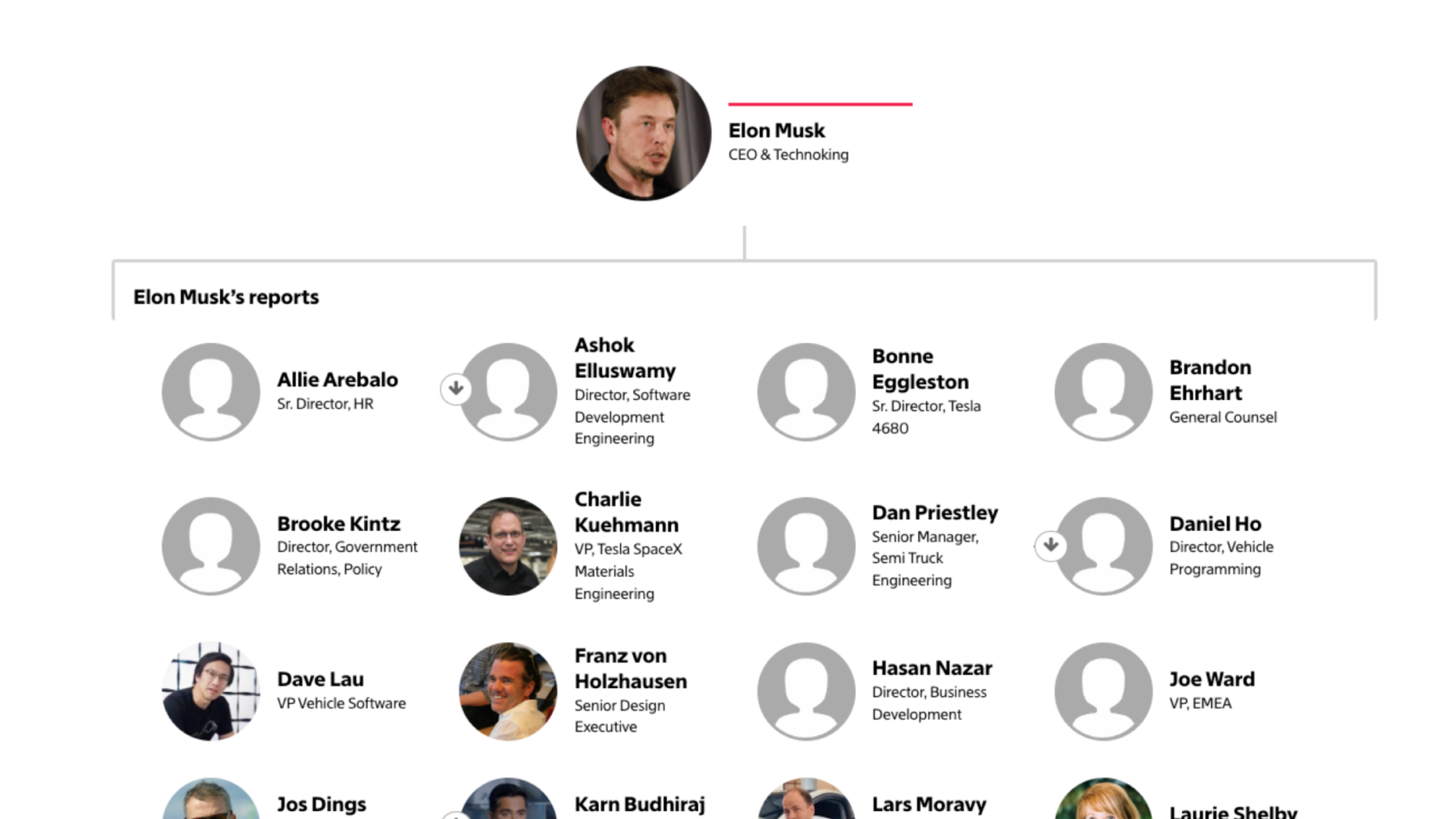 There’s a new order at Tesla: The company said Monday it would eliminate 10% of its workforce, and two key executives who reported directly to CEO Elon Musk have departed. At least 35 people now report directly to Musk, according to Tesla’s internal org chart, which The Information viewed. (See our updated Tesla Org Chart here.) The... There’s a new order at Tesla: The company said Monday it would eliminate 10% of its...